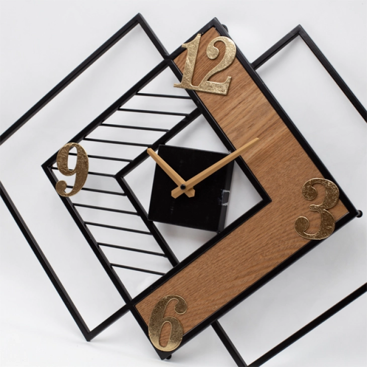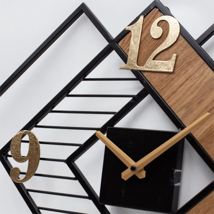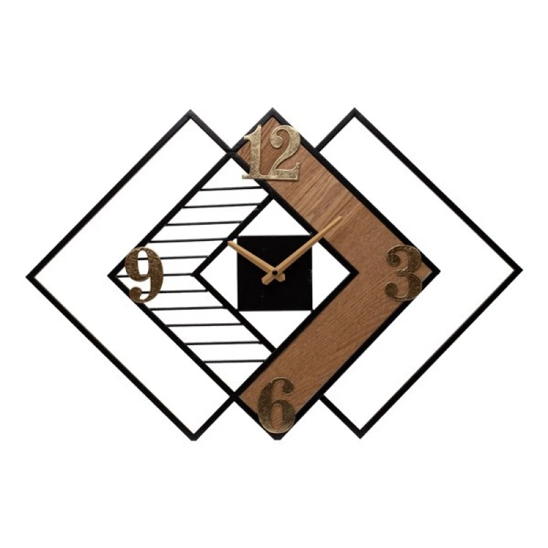 Ρολόι Τοίχου Ξύλινο-Μεταλλικό Natural-Χρυσό-Μαύρο 63x3,5x42,5εκ. ESTHETI 813-10004