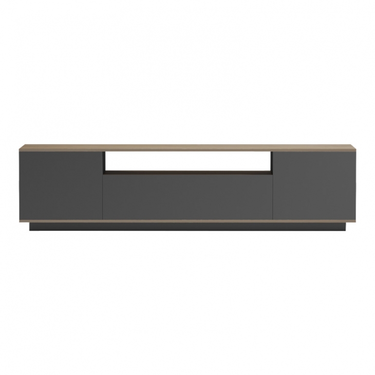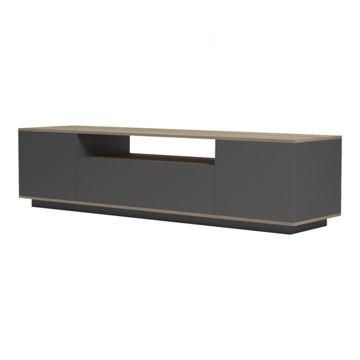 Αναβαθμίστε την ψυχαγωγική σας γωνιά με αυτό το σύγχρονο και ευέλικτο έπιπλο τηλεόρασης, σχεδιασμένο για να προσφέρει τόσο στυλ όσο και άφθονο αποθηκευτικό χώρο. Ο συνδυασμός του γκρι φινιρίσματος με τη ζεστή απόχρωση του ξύλου δημιουργεί μια αισθητική που ταιριάζει άψογα σε μοντέρνους και μινιμαλιστικούς χώρους.