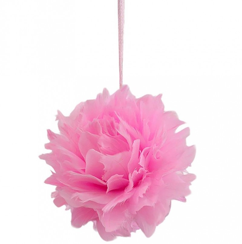 Χριστουγεννιάτικο στολίδι κρεμαστό λουλούδι με φτερά και πούπουλα σε ροζ χρώμα από την Xmas fest - Διαστάσεις: Δ10εκ. - Η ελάχιστη ποσότητα αγοράς για αυτό το προϊόν είναι 12τμχ.