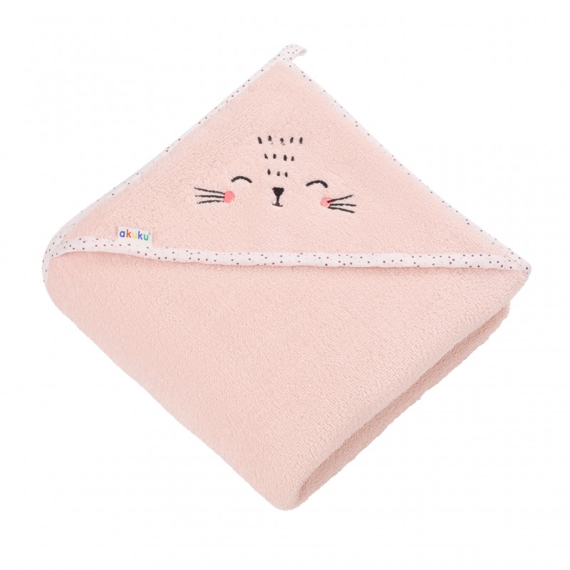 H Βρεφική Πετσέτα με Κουκούλα Ροζ Γατούλα από την Akuku θα γίνει αναντικατάστατη από το πρώτο μπάνιο.