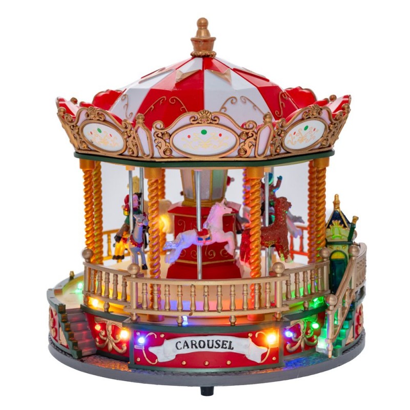 Χριστουγεννιάτικο καρουζέλ polyresin - πλαστικό με φως, μουσική και κίνηση από την iliadis - Διαστάσεις: 22,5x22,5x23,5εκ.