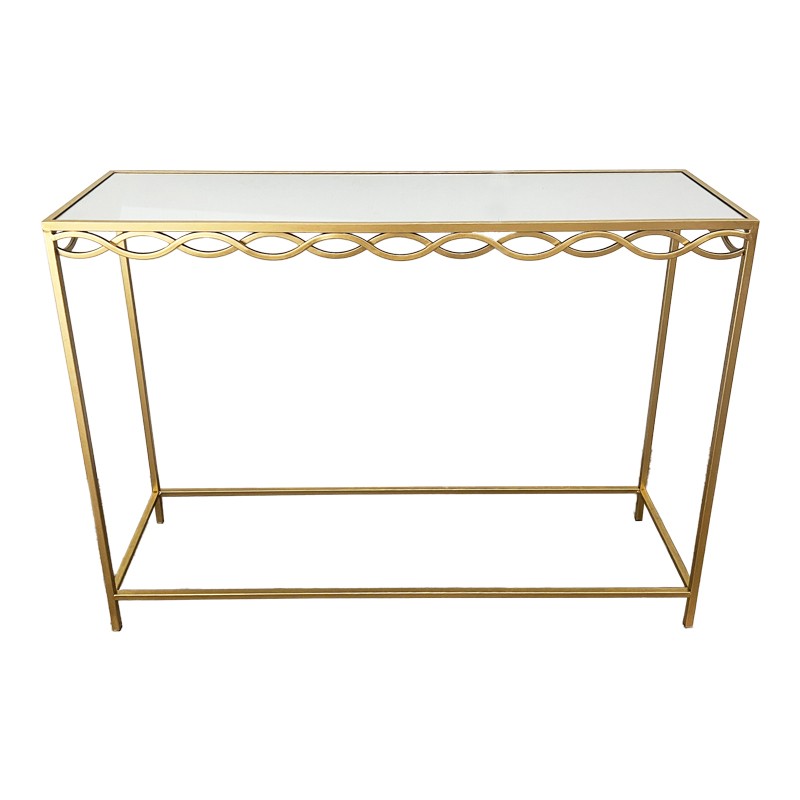 Αναδείξτε κάθε γωνιά του σπιτιού σας με αυτήν τη σύγχρονη μεταλλική κονσόλα, ένα κομμάτι που συνδυάζει άψογα τη λειτουργικότητα με το στυλ. Το ανθεκτικό μεταλλικό της πλαίσιο δίνει μια αίσθηση στιβαρότητας και μοντέρνου design. Η επιφάνεια καθρέφτη δεν είναι απλώς όμορφη, αλλά και ευφυής: αντανακλά το φως, δημιουργώντας μια αίσθηση ευρυχωρίας και φωτεινότητας, κάνοντας τον χώρο να φαίνεται μεγαλύτερος και πιο φιλόξενος.