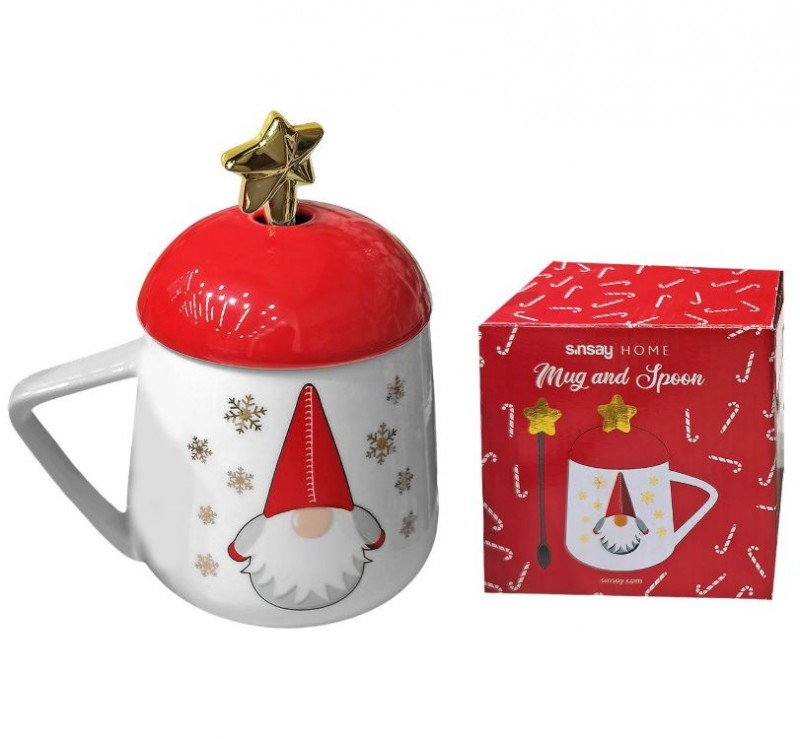 Χριστουγεννιάτικη κούπα πορσελάνης με καπάκι και κουταλάκι από την Xmas fest - Χωρητικότητα: 400ml.