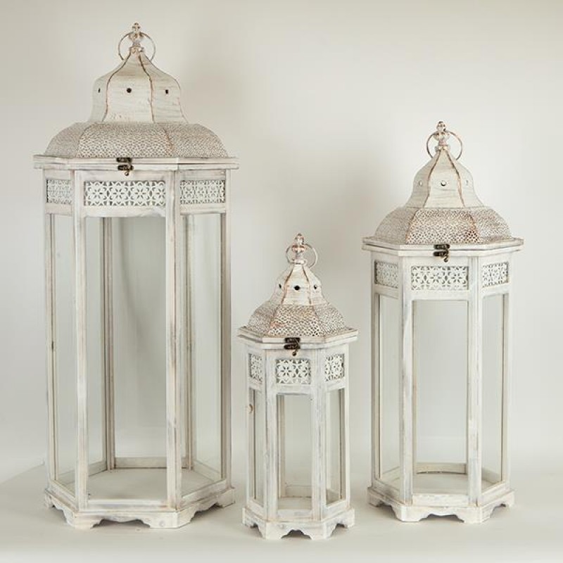 Φανάρι Σετ 3τμχ Ξύλινο-Μεταλλικό Λευκό 37,5x32x91εκ.-29,5x25,5x72εκ.-21,5x18,5x53εκ. ESTHETI 752-10014