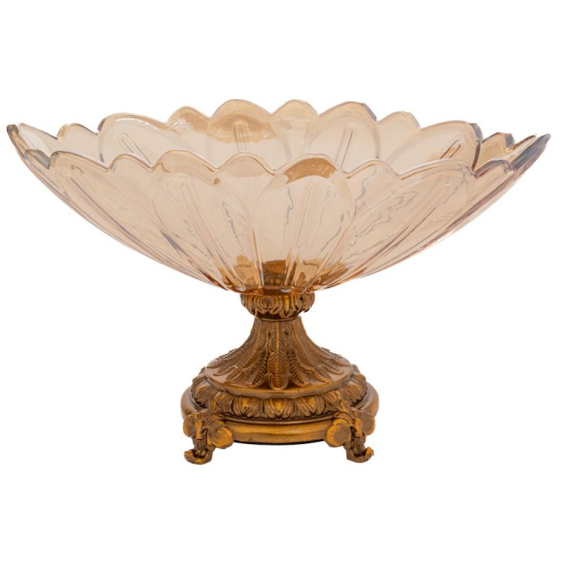Διακοσμητικό μπωλ γυάλινο μελί, με μεταλλικό χρυσό πόδι από την iliadis - Διαστάσεις: 30x16x18εκ.