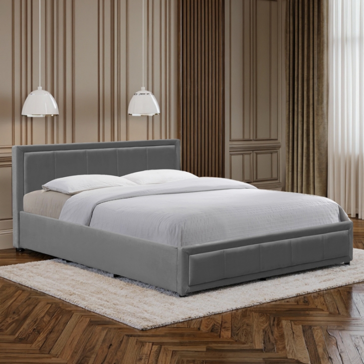 Κρεβάτι Huga με Αποθηκευτικό ΧώροΤο κομψό και πρακτικό κρεβάτι Huga αποτελεί μια εξαιρετική λύση για κάθε υπνοδωμάτιο, προσφέροντας τόσο άνεση όσο και έξυπνο αποθηκευτικό χώρο. Η κατασκευή του, επενδυμένη με υψηλής ποιότητας βελούδο, προσδίδει μια σύγχρονη και εκλεπτυσμένη αισθητική που ενσωματώνεται άψογα σε όλα τα στυλ διακόσμησης.
