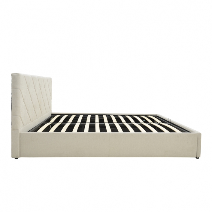 - Με έναν εύκολο μηχανισμό ανύψωσης, ανασηκώνεται αβίαστα, αποκαλύπτοντας έναν μεγάλο χώρο ιδανικό για την αποθήκευση λευκών ειδών, μαξιλαριών, εποχιακών ρούχων ή άλλων αντικειμένων, συμβάλλοντας στην οργάνωση και την τάξη του χώρου.