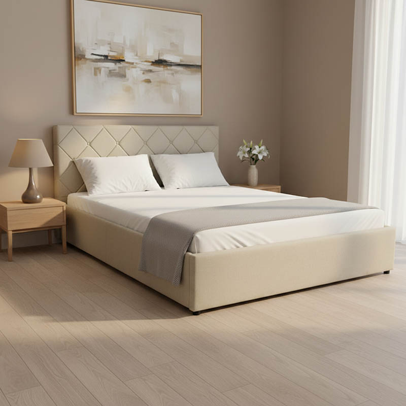 Κρεβάτι Dreamie με Αποθηκευτικό ΧώροTο κομψό και λειτουργικό κρεβάτι Dreamie, προσφέρει μια έξυπνη λύση αποθήκευσης, καθώς διαθέτει έναν εύχρηστο μηχανισμό ανύψωσης του στρώματος, αποκαλύπτοντας έναν ευρύχωρο αποθηκευτικό χώρο από κάτω. Το κεφαλάρι, με το διαχρονικό καπιτονέ σχέδιο, προσθέτει μια νότα πολυτέλειας και άνεσης, ενώ η χρωματική του απόχρωση το καθιστά ευέλικτο και συμβατό με όλα τα στυλ διακόσμησης.