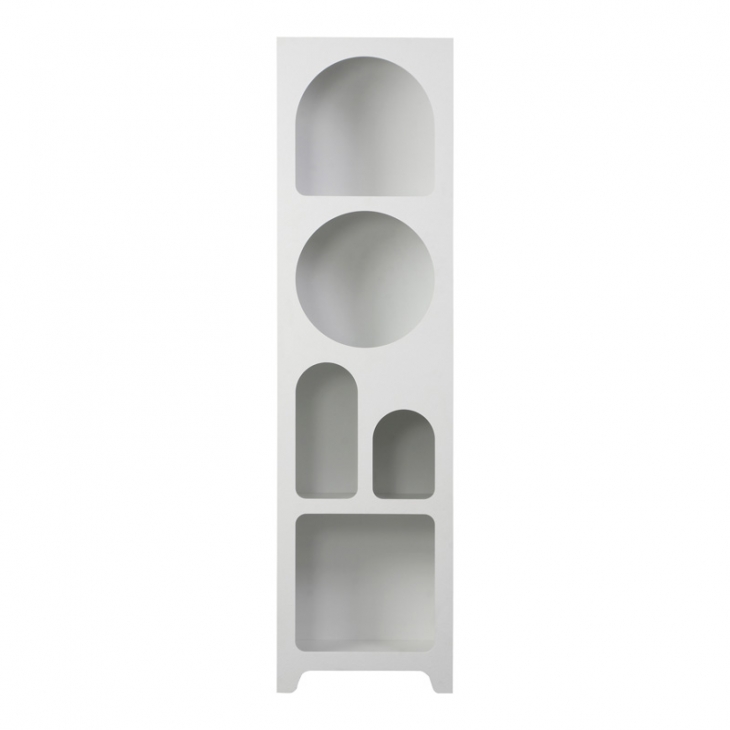 Με τον μοντέρνο, λευκό του σχεδιασμο και τα ιδιαίτερα τμήματα - μερικά καμπυλωτά, άλλα πιο γεωμετρικά - η βιβλιοθήκη Emersi προσφέρει μια παιχνιδιάρικη αλλά ταυτόχρονα οργανωμένη λύση αποθήκευσης. Είναι ιδανικό για να αναδείξεις τα αγαπημένα σου βιβλία, διακοσμητικά ή φυτά, προσθέτοντας μια νότα στυλ σε κάθε χώρο.