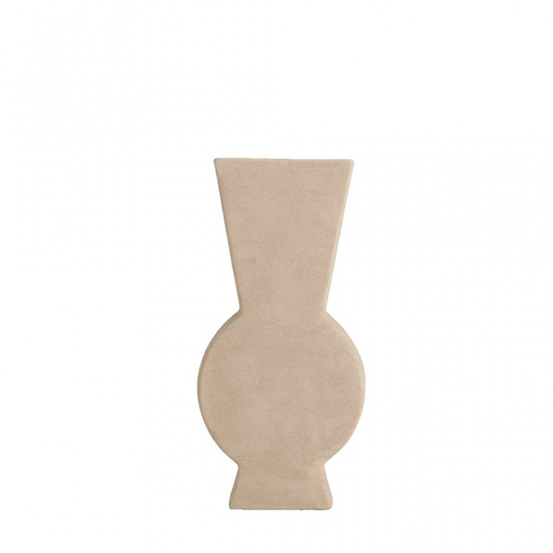 Βάζο κεραμικό πλακέ σε μπεζ χρώμα με χρυσή πατίνα από την ESPIEL - Διαστάσεις: 18,5x6,5x38,8εκ.