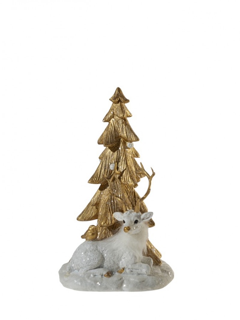 Χριστουγεννιάτικο διακοσμητικό δέντρο με τάρανδο polyester σε λευκό - χρυσό χρώμα με γκλίντερ από την Zen Collection - Διαστάσεις: 12,5x12x20εκ.