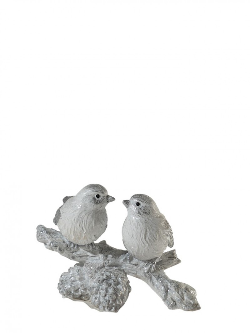 Διακοσμητικό Επιτραπέζιο Κλαδί Με Πουλάκια Polyester Ασημί-Λευκό 15x10x10,5εκ. Zen Collection 25.42.51977