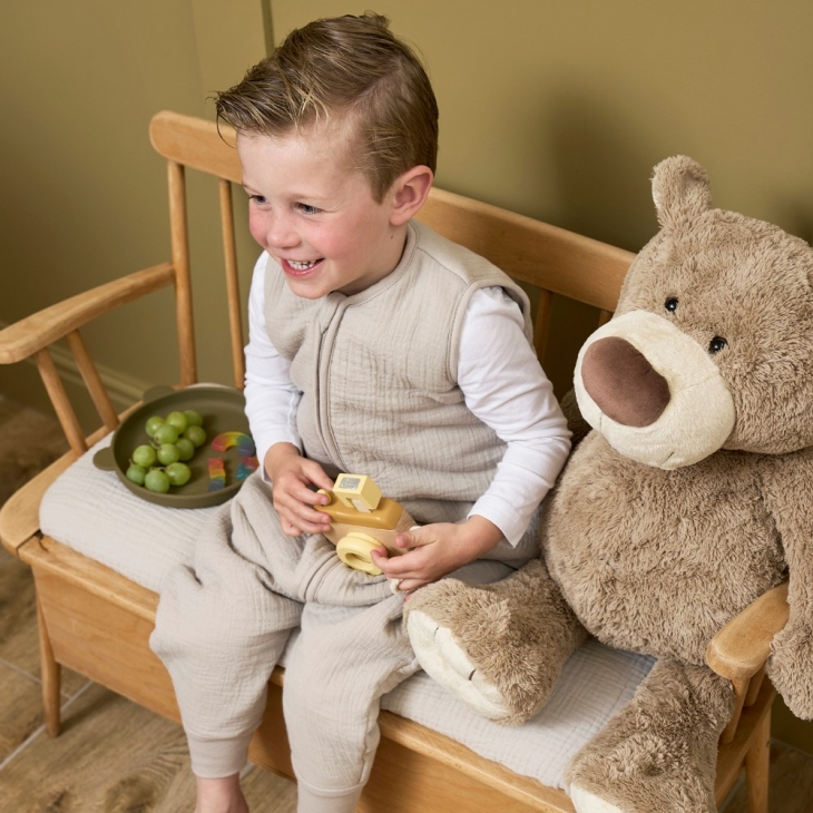 Με τον Βαμβακερό Υπνόσακο Muslin Sand (9 μηνών-5 ετών) από τη Meyco ,το μικρό σας μπορεί να κοιμάται άνετα και ποιοτικά καθόλη τη διάρκεια της νύχτας. Με δύο ξεχωριστά ποδαράκια και χωρίς μανίκια για μεγαλύτερη άνεση.