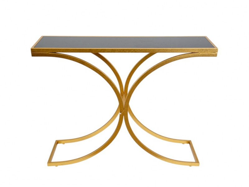 Κονσόλα μεταλλική σε χρυσό χρώμα με μαύρο τζάμι από την Zen Collection - Διαστάσεις: 106,5x30,5x79,5εκ.