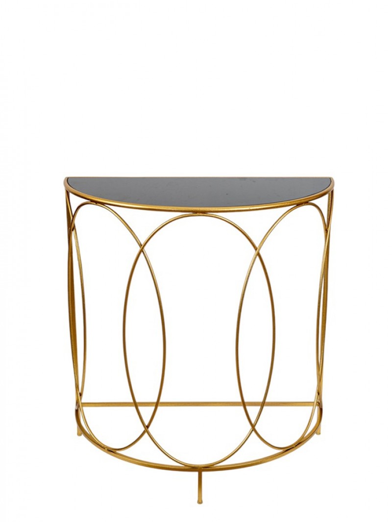 Κονσόλα μεταλλική σε χρυσό χρώμα με μαύρο τζάμι από την Zen Collection - Διαστάσεις: 75x37,5x81εκ.