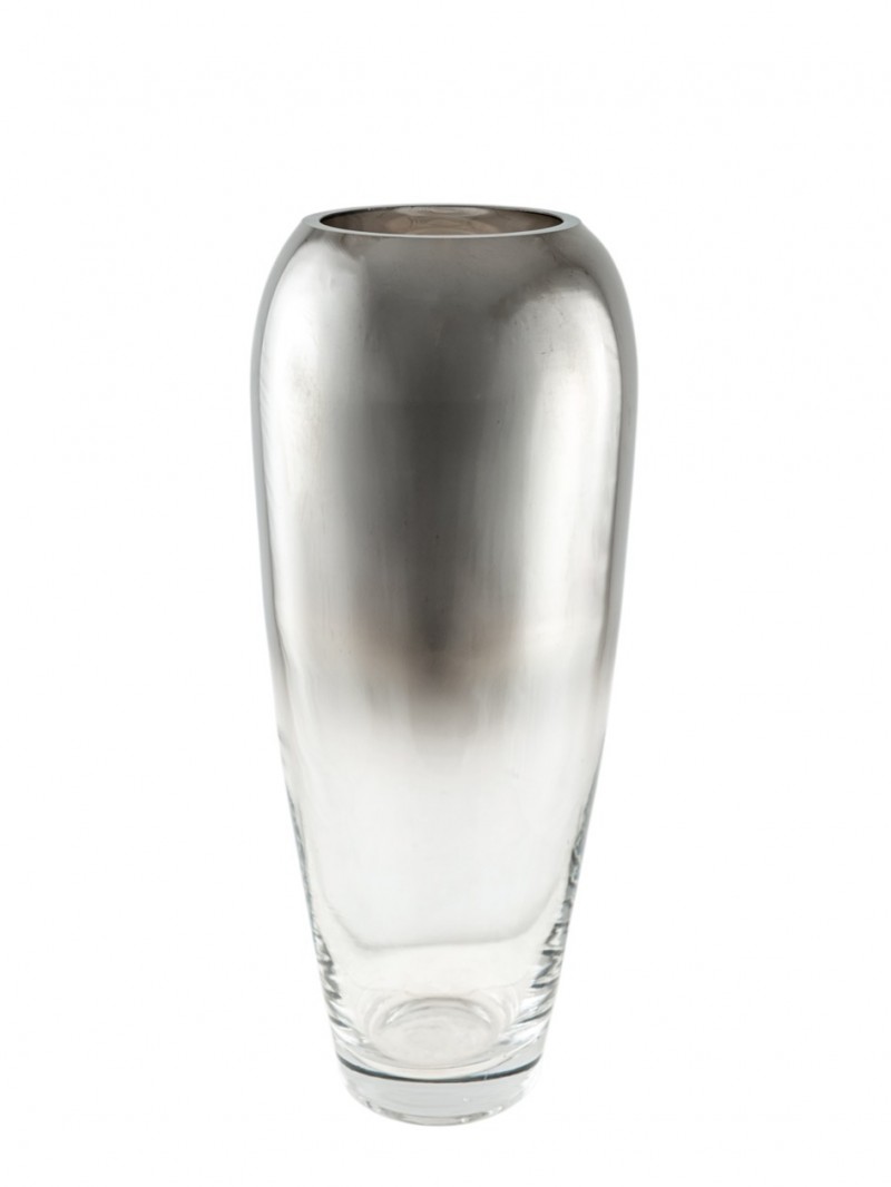 Βάζο χειροποίητο από φυσητό γυαλί σε ασημί - διάφανο χρώμα από την Zen Collection - Διαστάσεις: 14x33εκ.