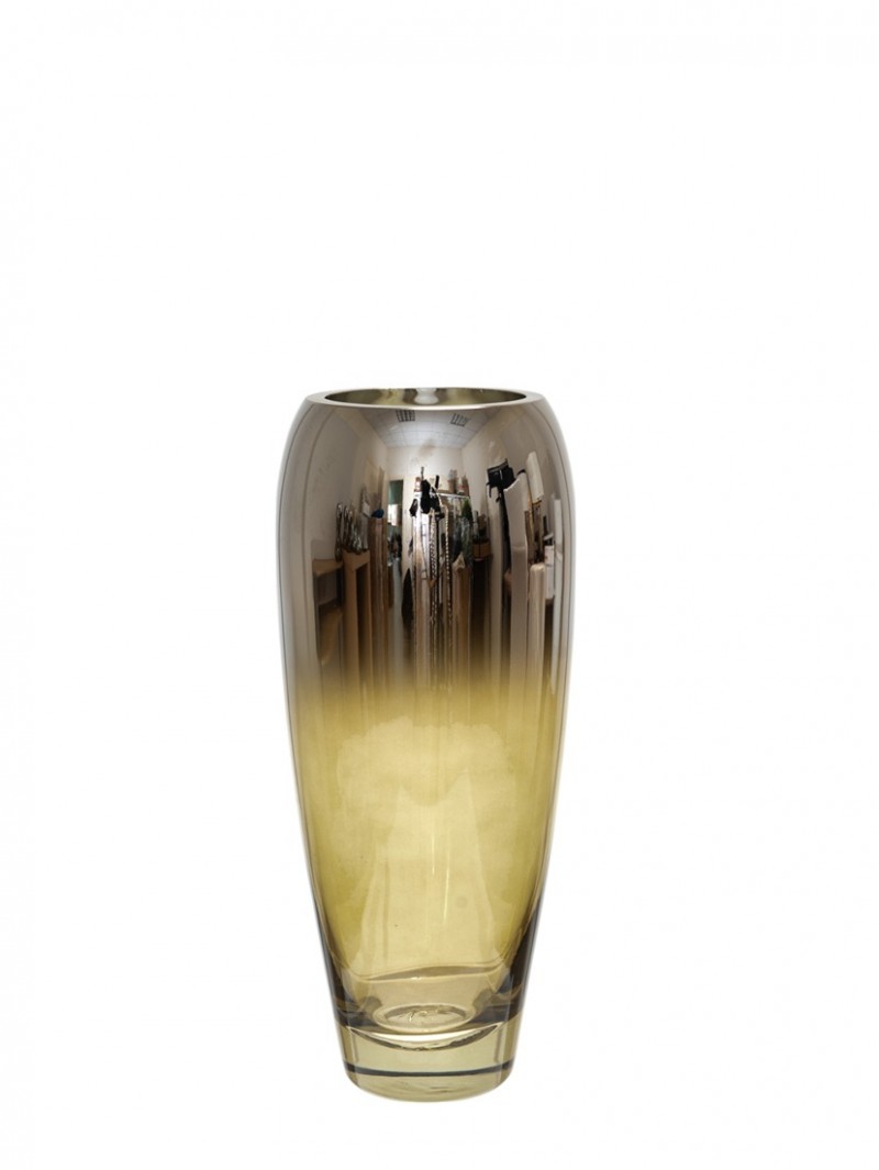 Βάζο χειροποίητο από φυσητό γυαλί σε ασημί - λαδί χρώμα από την Zen Collection - Διαστάσεις: 12x28,7εκ.
