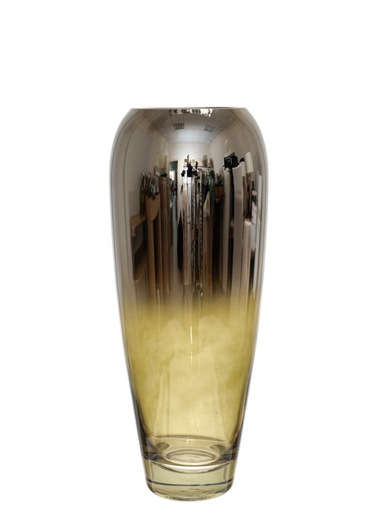 Βάζο χειροποίητο από φυσητό γυαλί σε ασημί - λαδί χρώμα από την Zen Collection - Διαστάσεις: 14x33εκ.