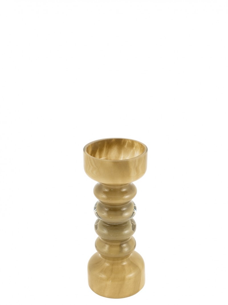 Κηροπήγιο από φυσητό γυαλί, σε μπεζ - πράσινο χρώμα από την Zen Collection - Διαστάσεις: 10,5x25εκ.