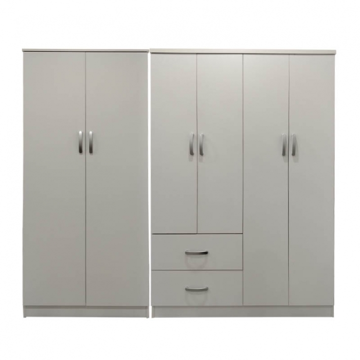 - Περιλαμβάνει έξι πόρτες, εσωτερικά φέρει ράγα για κρεμάστρες και ράφια ενώ κάτω φέρει δυο μεγάλα συρτάρια για την αποθήκευση ρούχων και αξεσουάρ.