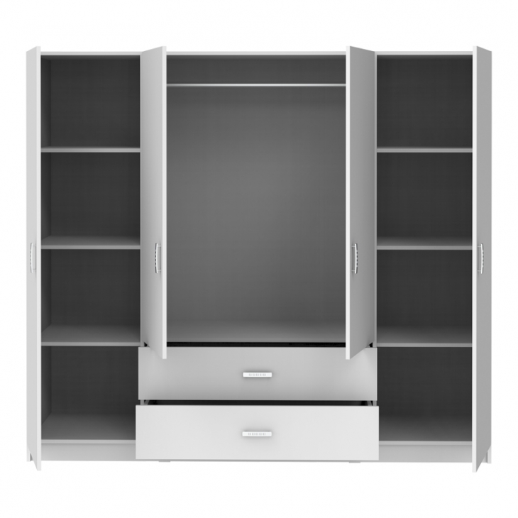 - Στο εσωτερικό περιλαμβάνει μεταλλική βέργα για κρεμάστρες και πολλαπλά ράφια.