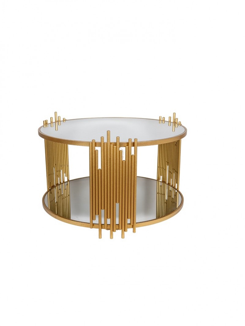 Τραπέζι σαλονιού στρογγυλό μεταλλικό σε χρυσό χρώμα με τζάμι καθρέπτη από την Zen Collection - Διαστάσεις: 79x50εκ.