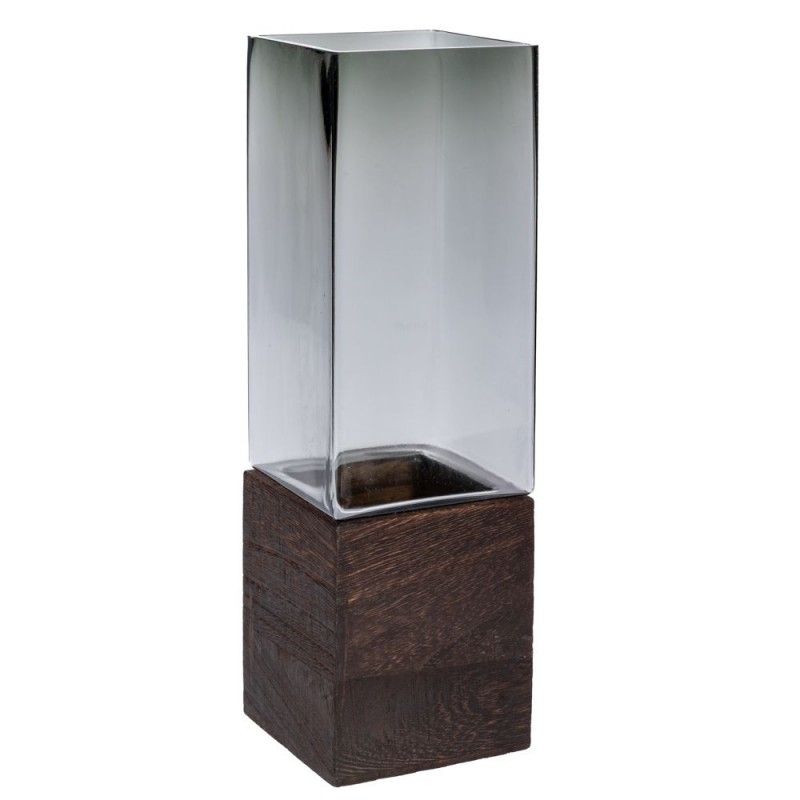 Βάζο Γυάλινο-Ξύλινο Γκρι-Καφέ 10x30εκ. iliadis 91956