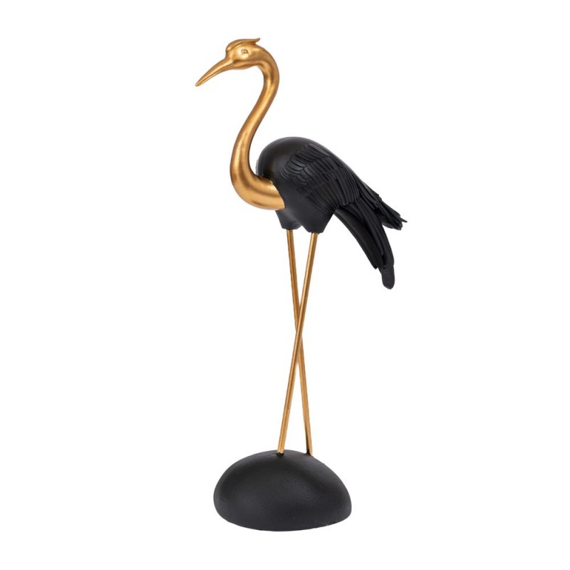 Διακοσμητικός επιτραπέζιος ερωδιός polyresin σε χρυσό χρώμα με μαύρα φτερά και βάση από την iliadis - Διαστάσεις: 18x9,5x38εκ.