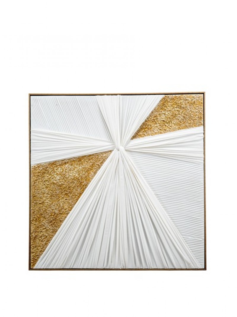 Πίνακας σε καμβά με κορνίζα και ύφασμα σε λευκό χρώμα και χρυσές πέτρες από την Zen Collection - Διαστάσεις: 82x4,5x82εκ.