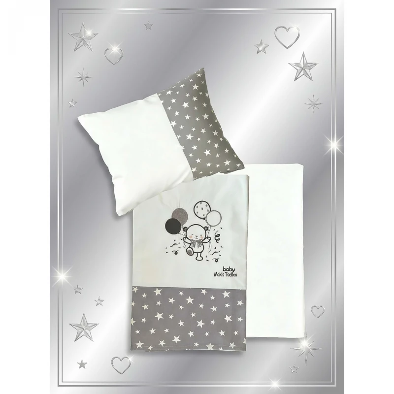 Σετ σεντόνια κούνιας 3τμχ, 100% βαμβάκι σε γκρι απόχρωση από την εταιρεία Makis Tselios Home. Το σετ περιλαμβάνει: 2 σεντόνια: 120x170εκ. και 1 μαξιλαροθήκη: 30x40εκ.