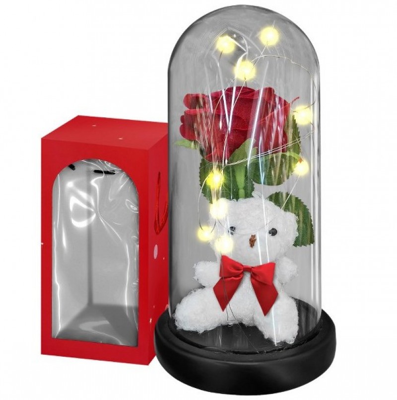 Αρκούδος με τριαντάφυλλο σε γυάλα με φως από την Homie - Διαστάσεις: 22x11εκ.