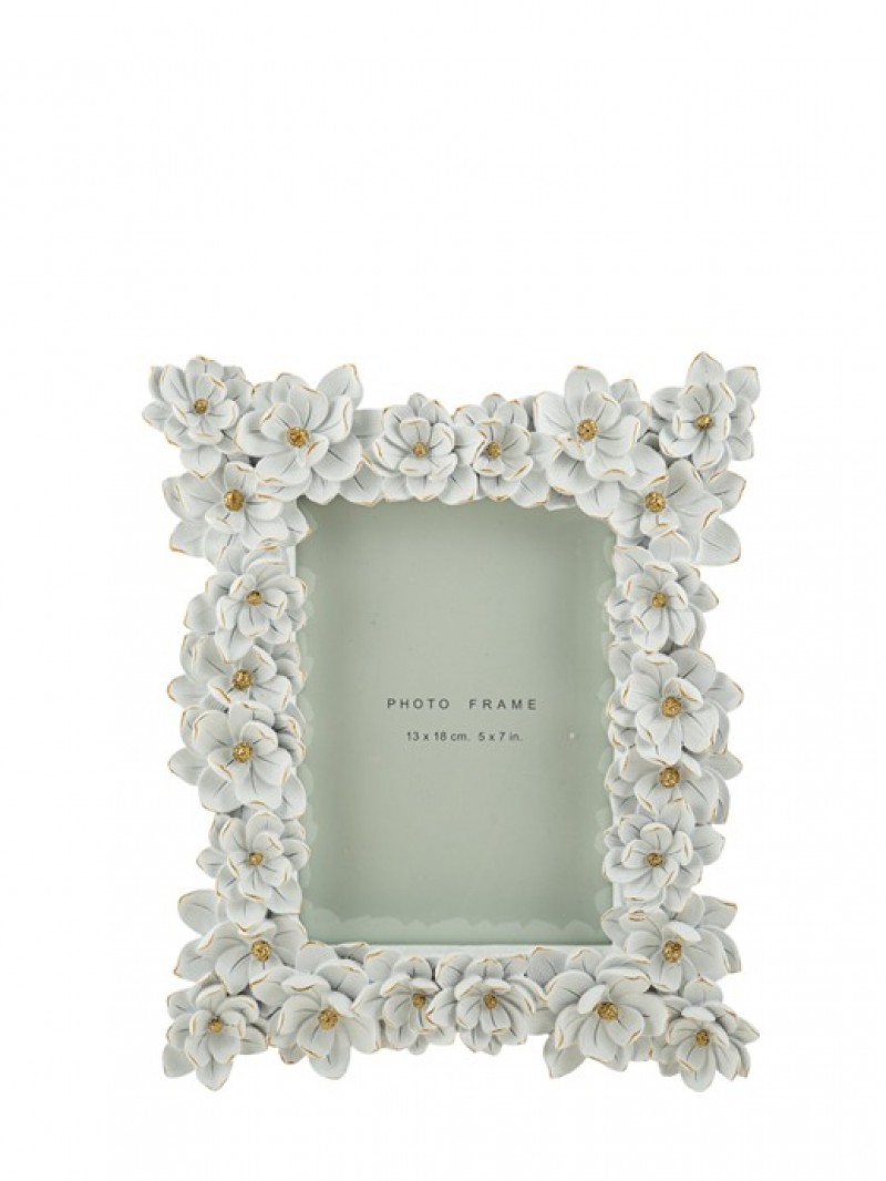 Κορνίζα polyester με σχέδιο λουλούδια σε λευκό χρώμα με χρυσές λεπτομέρειες από την Zen Collection - Διαστάσεις φωτογραφίας: 13x18εκ.