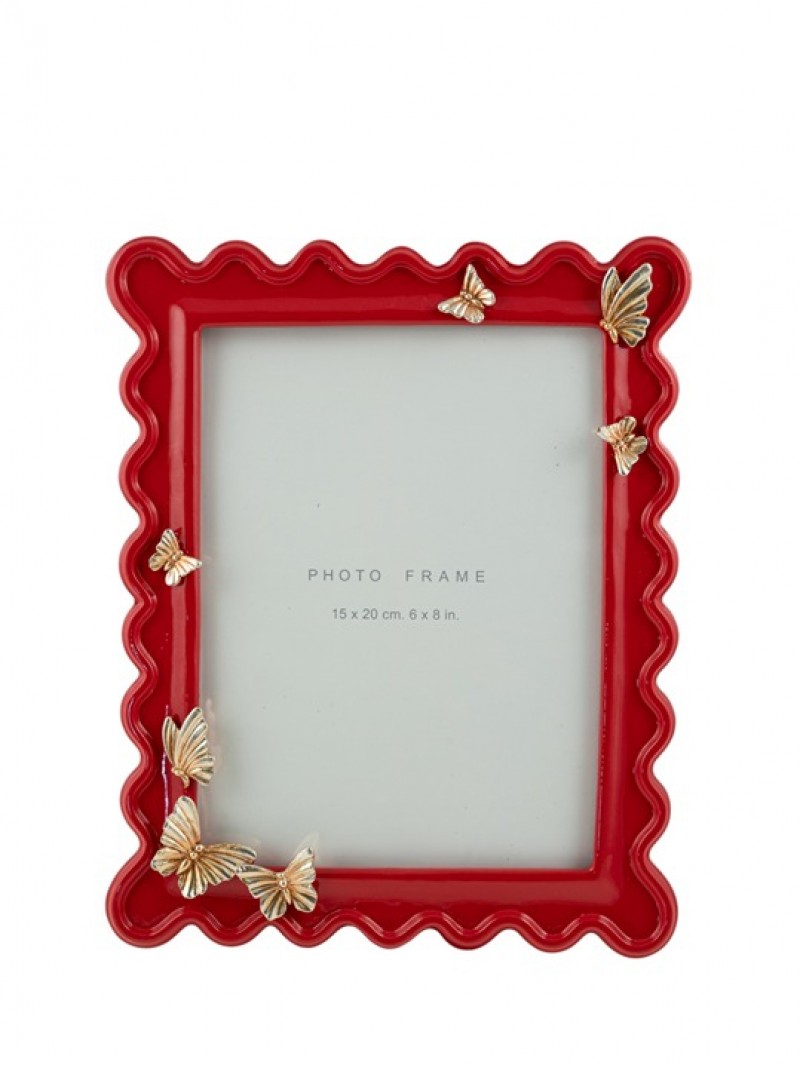 Κορνίζα polyester σε κόκκινο χρώμα με χρυσές πεταλούδες από την Zen Collection - Διαστάσεις φωτογραφίας: 15x20εκ.
