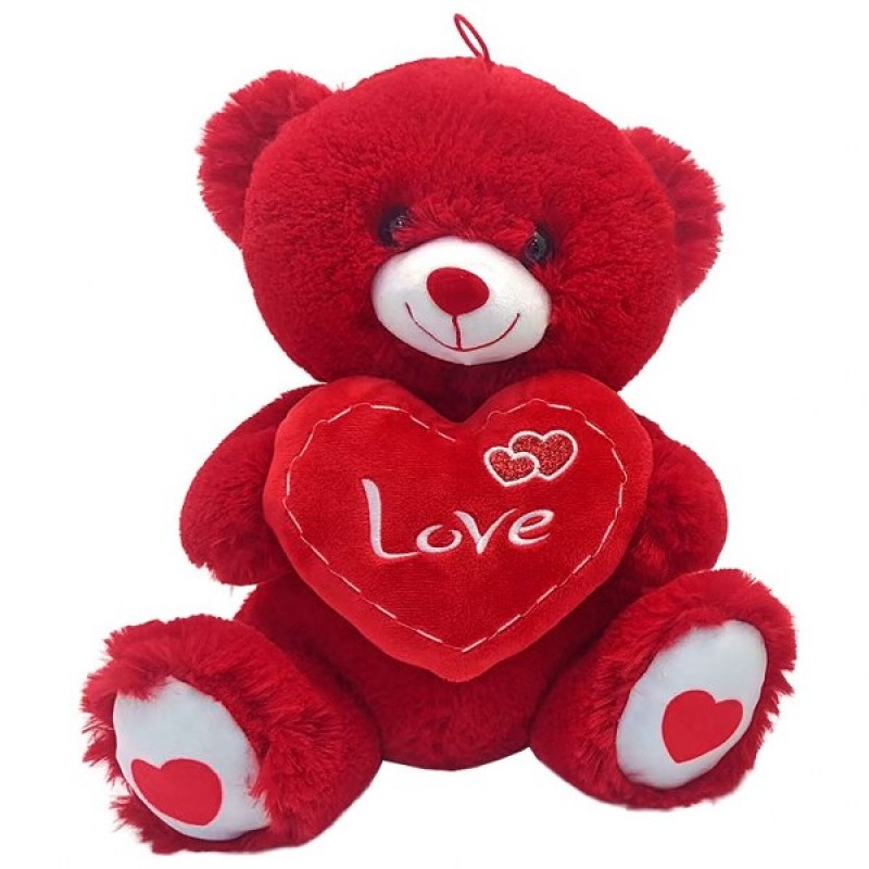 Αρκουδάκι λούτρινο σε κόκκινο χρώμα με καρδιά από την Toy Markt - Διαστάσεις: 30εκ.