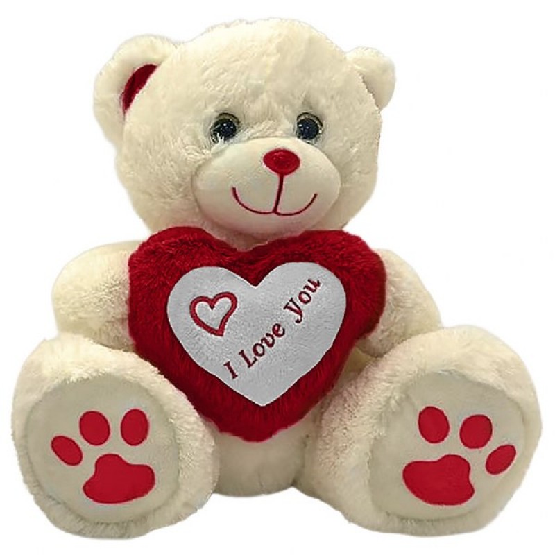 Αρκουδάκι λούτρινο σε εκρού χρώμα με κόκκινη καρδιά από την Toy Markt - Διαστάσεις: 30εκ.