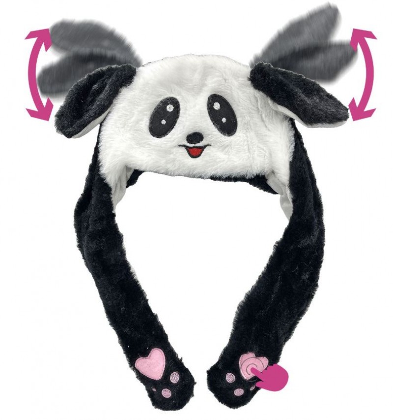 Σκούφος με κίνηση στα αυτιά με σχέδιο panda σε λευκό - μαύρο χρώμα από την Carnavalista - Διαστάσεις: 35x50εκ.
