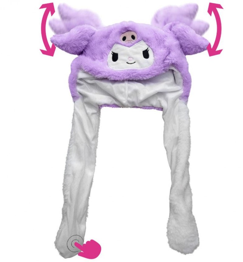 Σκούφος με κίνηση στα αυτιά με σχέδιο γάτα σε μωβ χρώμα από την Carnavalista - Διαστάσεις: 26x50εκ.