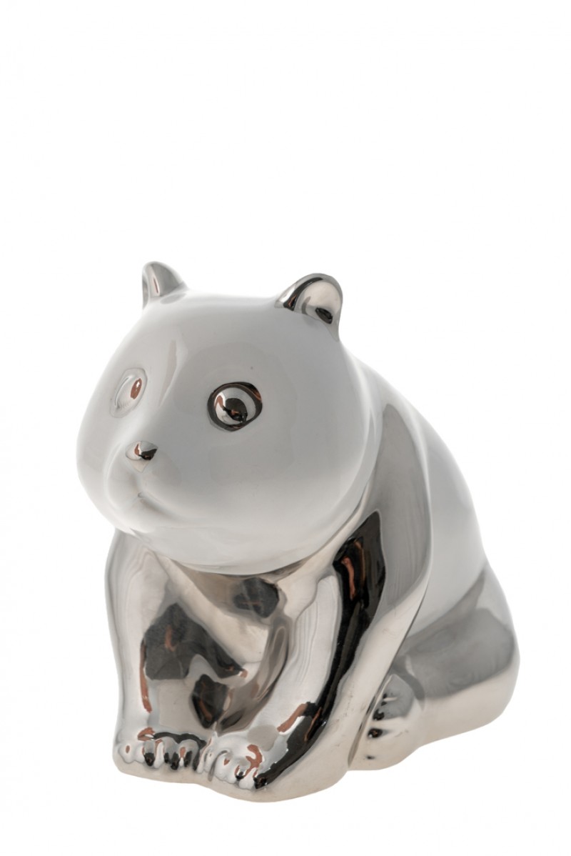 Διακοσμητική επιτραπέζια φιγούρα κεραμική panda σε ασημί-λευκό χρώμα από την Zen Collection - Διαστάσεις: 17,3εκ.