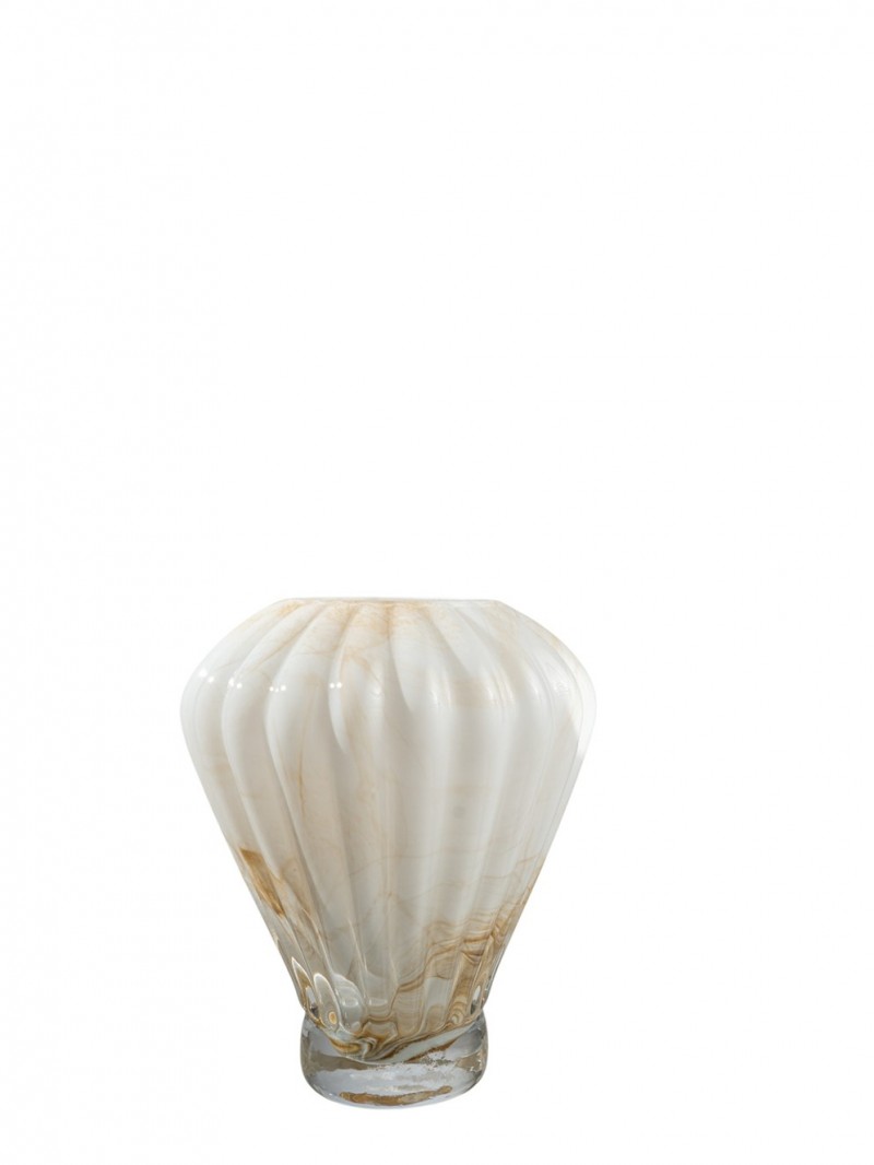 Χειροποίητο βάζο φυσητό γυαλί με εφέ μαρμάρου σε αποχρώσεις του μπεζ από την Zen Collection - Διαστάσεις: 17x20εκ.