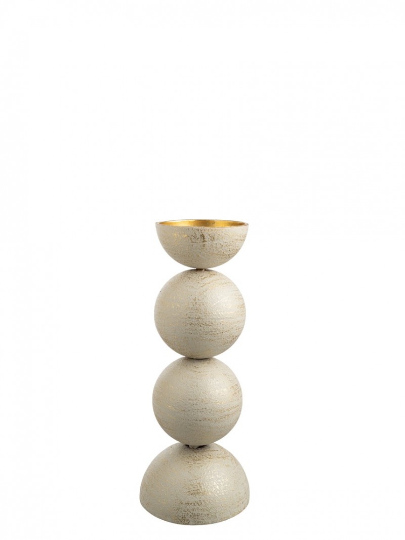 Κηροπήγιο μεταλλικό σε μπεζ χρώμα με χρυσές λεπτομέρειες από την Zen Collection - Διαστάσεις: 10x24,5εκ.