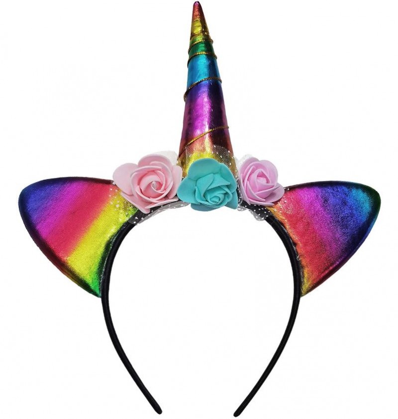 Στέκα μονόκερος με Αυτιά, φιόγκο και λουλούδια από την CARNAVAlista - Διαστάσεις: 26x24εκ. - Η ελάχιστη ποσότητα αγοράς για αυτό το προϊόν είναι 12τμχ.